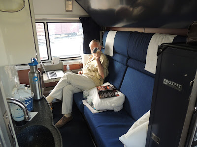 For a long train trip, reserving one of the big bedrooms is half the fun. It's a good size with a private toilet (and shower, if you choose to use it). And there's a car attendant who takes care of your every need, from making fresh coffee in the morning to dropping by with chocolate kisses.