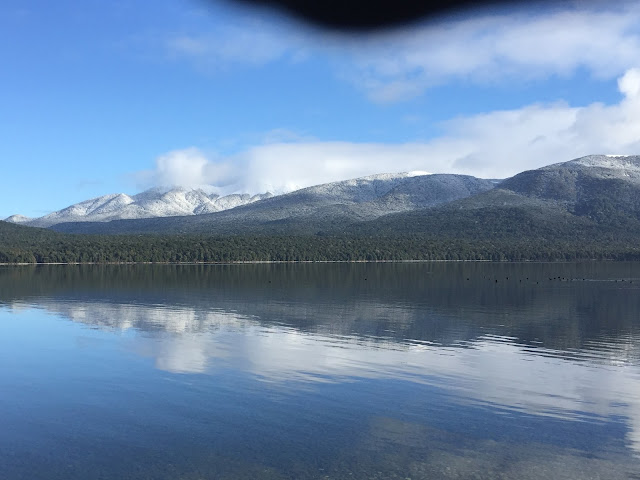Not sure it dropped to minus 8C (17.6F) last night, but it was cold. Then again, it's NZ winter and we're close to the southern tip of the South Island, which, because it's farther from the equator, is colder in winter. Lake Te Anau lies on the border of Fiordland National Park, the largest of NZ's 14 national parks, with an area of 12,500 km².